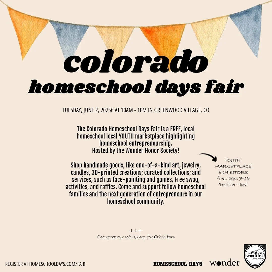 The Homeschool Days Fair is a local marektplace highlighting homeschool entrepreneurship and helping families connect and find out about homeschool groups and opportunities in Colorado. Plus, enjoy free swag, activities, raffles, and an entrepreneur workshop for all exhibitors. Come and support fellow homeschool families and the next generation of entrepreneurs in our homeschool community.